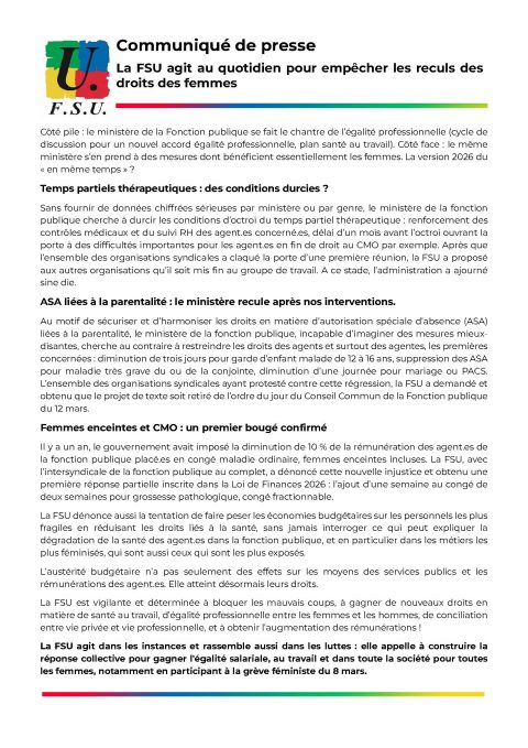 Communiqué : La FSU agit au quotidien pour empêcher les reculs des droits des femmes
