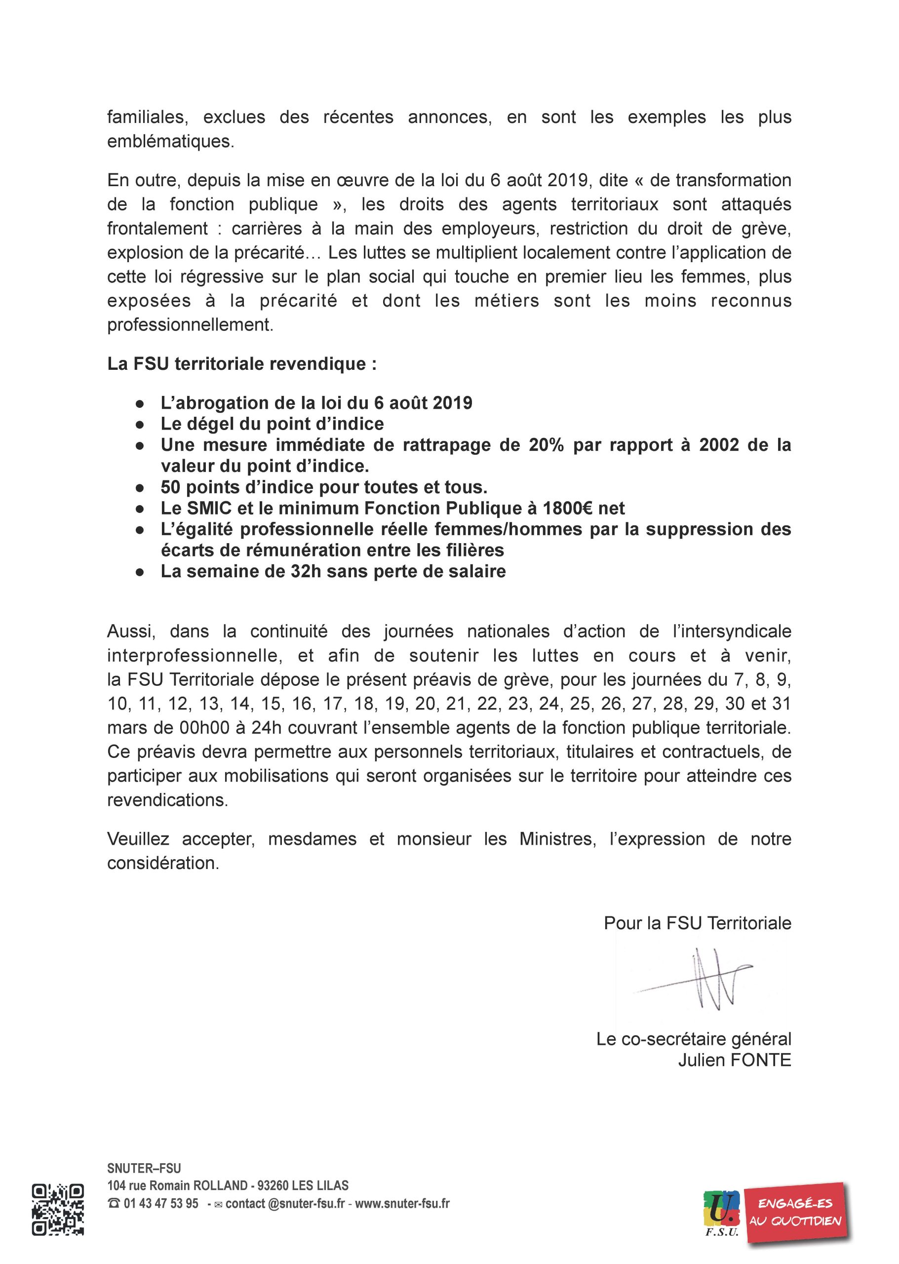 la FSU Territoriale dépose le présent préavis de grève, pour les journées du 7, 8, 9,
