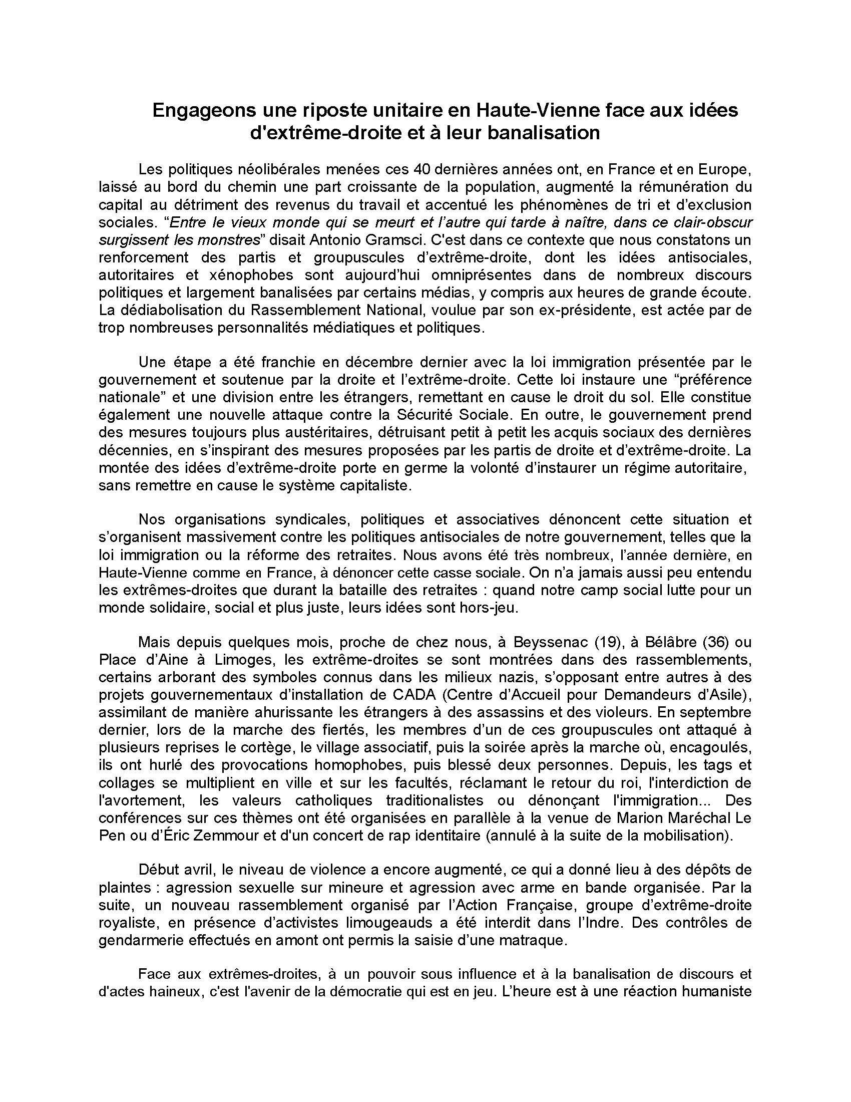 Télécharger le pdf : https://lafsuterritoriale87.fr/wp-content/uploads/2024/05/Texte-Collectif-contre-lextreme-droite.docx-1.pdf