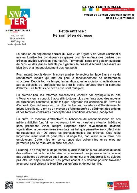 La FSU Territoriale, avec le collectif « Pas de bébés à la consigne »,