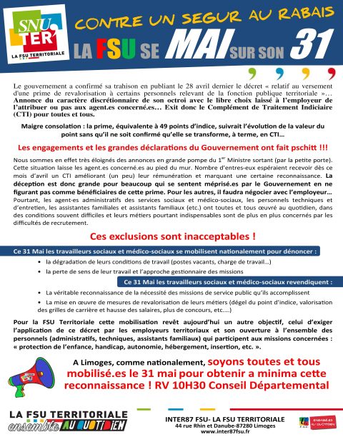 A Limoges comme nationalement, soyons toutes et tous mobilisé.es le 31 Mai pour obtenir à minima cette reconnaissance ! Rendez-vous à 10h30 devant le Conseil Départemental.
