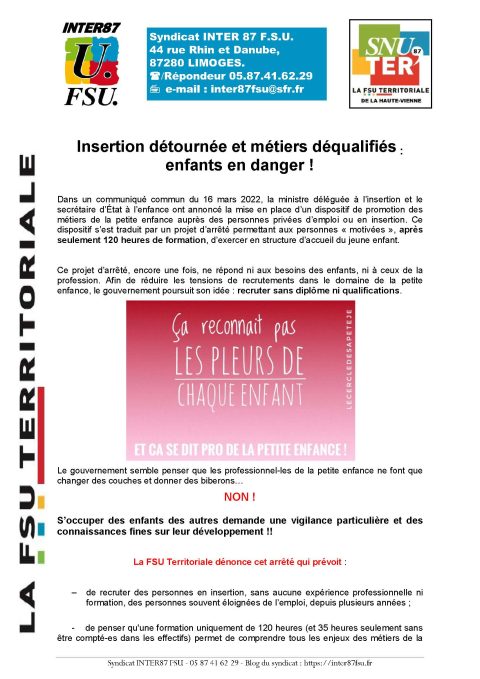 Ce projet d’arrêté, encore une fois, ne répond ni aux besoins des enfants, ni à ceux de la profession. Afin de réduire les tensions de recrutements dans le domaine de la petite enfance, le gouvernement poursuit son idée : recruter sans diplôme ni qualifications.