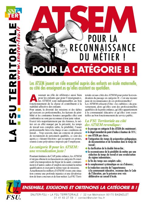 ATSEM : Pour la reconnaissance du métier ! Pour la catégorie B !