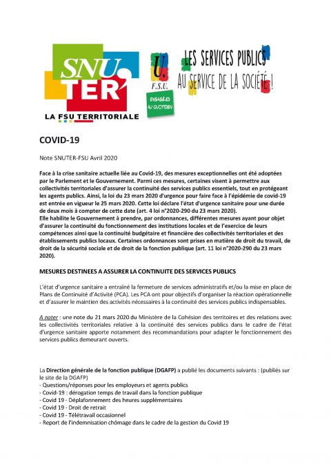 COMMUNIQUÉ DE PRESSE Limoges le 23 avril 2020 Dans son allocution du 13 avril, le Président de la République a annoncé la fin progressive du confinement, ainsi que la réouverture des crèches et des établissements scolaires dès le 11 mai,… Lire la suite COMMUNIQUÉ DE PRESSE INTER87-FSU « DÉCONFINEMENT »